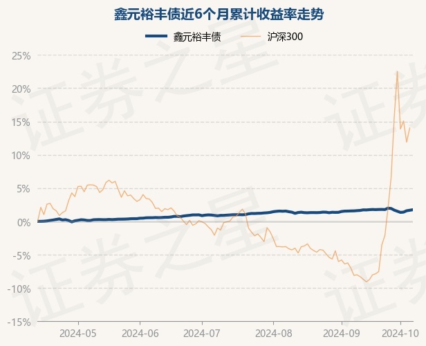 证券之星消息,10月14日,鑫元裕丰债最新单位净值为1.0777元,累计净值为1.0877元,较前一交易日上涨0.07%。历史数据显示该基金近1个月下跌0.01%,近3个月上涨0.78%,近6个月上涨1.75%,近1年上涨5.11%。该基金近6个月的累计收益率走势如下图: