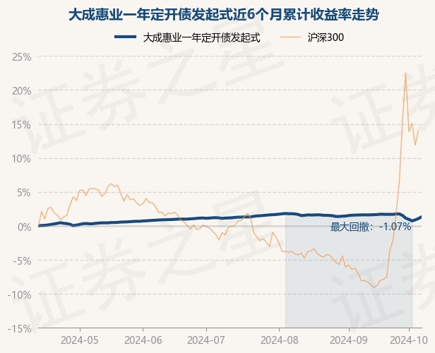 证券之星消息,10月14日,大成惠业一年定开债发起式最新单位净值为1.0035元,累计净值为1.1185元,较前一交易日上涨0.25%。历史数据显示该基金近1个月下跌0.34%,近3个月上涨0.08%,近6个月上涨1.32%,近1年上涨5.32%。该基金近6个月的累计收益率走势如下图: