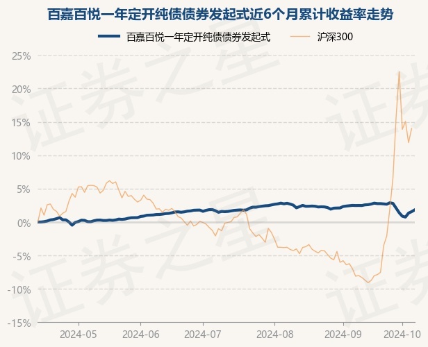 证券之星消息,10月14日,百嘉百悦一年定开纯债债券发起式最新单位净值为1.0199元,累计净值为1.0505元,较前一交易日上涨0.27%。历史数据显示该基金近1个月下跌0.84%,近3个月上涨0.16%,近6个月上涨1.83%,近1年上涨4.75%。该基金近6个月的累计收益率走势如下图: