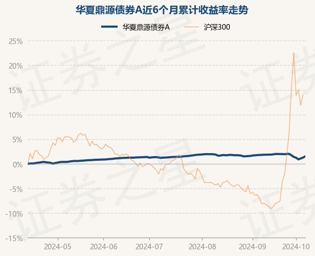 证券之星消息,10月14日,华夏鼎源债券A最新单位净值为0.8263元,累计净值为0.8263元,较前一交易日上涨0.25%。历史数据显示该基金近1个月下跌0.4%,近3个月上涨0.17%,近6个月上涨1.51%,近1年上涨4.49%。该基金近6个月的累计收益率走势如下图: