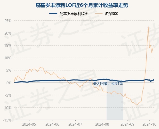 证券之星消息,10月14日,易基岁丰添利LOF最新单位净值为1.6536元,累计净值为2.5646元,较前一交易日上涨0.4%。历史数据显示该基金近1个月上涨0.47%,近3个月上涨0.29%,近6个月上涨1.25%,近1年上涨4.05%。该基金近6个月的累计收益率走势如下图: