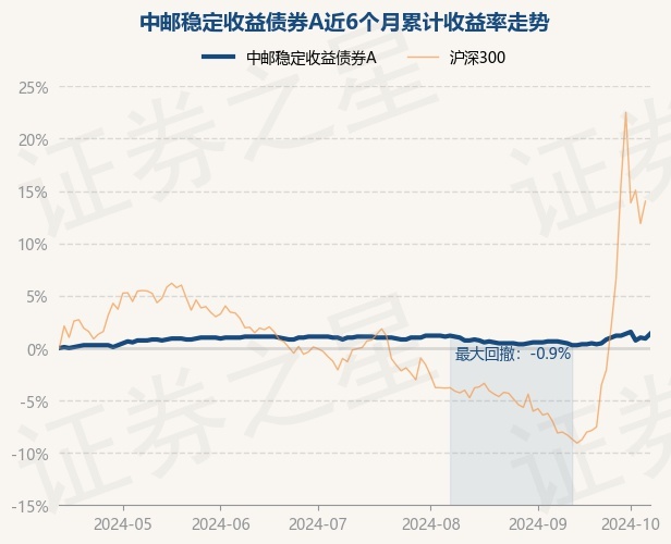 证券之星消息,10月14日,中邮稳定收益债券A最新单位净值为1.115元,累计净值为1.663元,较前一交易日上涨0.45%。历史数据显示该基金近1个月上涨1.0%,近3个月上涨0.27%,近6个月上涨1.36%,近1年上涨4.39%。该基金近6个月的累计收益率走势如下图: