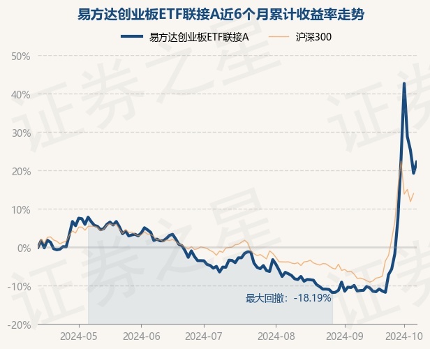 证券之星消息,10月14日,易方达创业板ETF联接A最新单位净值为2.2091元,累计净值为2.2091元,较前一交易日上涨2.47%。历史数据显示该基金近1个月上涨38.05%,近3个月上涨26.56%,近6个月上涨22.23%,近1年上涨7.73%。该基金近6个月的累计收益率走势如下图: