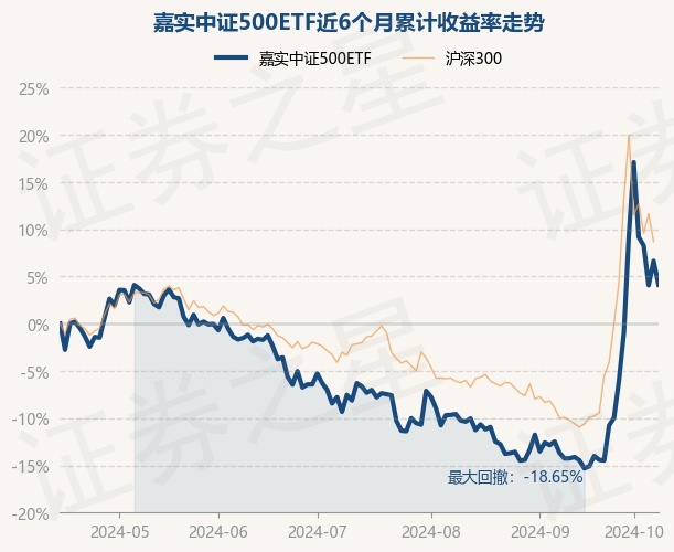 证券之星消息,10月15日,嘉实中证500ETF最新单位净值为5.77元,累计净值为1.8077元,较前一交易日下跌2.37%。历史数据显示该基金近1个月上涨22.96%,近3个月上涨12.34%,近6个月上涨4.12%,近1年下跌1.47%。该基金近6个月的累计收益率走势如下图: