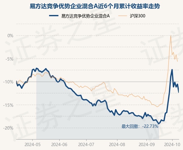 证券之星消息,10月15日,易方达竞争优势企业混合A最新单位净值为0.4883元,累计净值为0.4883元,较前一交易日下跌3.46%。历史数据显示该基金近1个月上涨16.79%,近3个月上涨3.94%,近6个月下跌4.57%,近1年下跌12.65%。该基金近6个月的累计收益率走势如下图:
