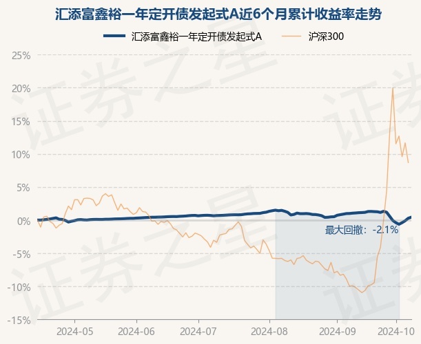 证券之星消息,10月15日,汇添富鑫裕一年定开债发起式A最新单位净值为1.0051元,累计净值为1.0551元,较前一交易日上涨0.16%。历史数据显示该基金近1个月下跌0.72%,近3个月下跌0.34%,近6个月上涨0.44%,近1年上涨2.48%。该基金近6个月的累计收益率走势如下图: