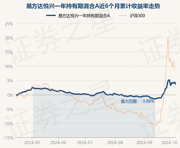 证券之星消息,10月15日,易方达悦兴一年持有期混合A最新单位净值为1.0249元,累计净值为1.0249元,较前一交易日下跌0.72%。历史数据显示该基金近1个月上涨5.17%,近3个月上涨3.08%,近6个月上涨3.66%,近1年上涨1.96%。该基金近6个月的累计收益率走势如下图: