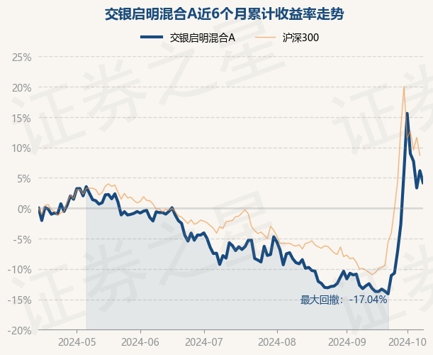 证券之星消息,10月15日,交银启明混合A最新单位净值为1.0817元,累计净值为1.2477元,较前一交易日下跌1.85%。历史数据显示该基金近1个月上涨20.77%,近3个月上涨12.02%,近6个月上涨4.2%,近1年下跌3.61%。该基金近6个月的累计收益率走势如下图:
