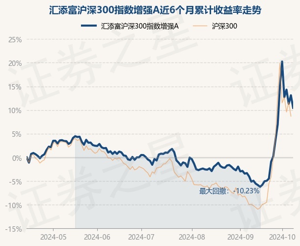 证券之星消息,10月15日,汇添富沪深300指数增强A最新单位净值为1.3147元,累计净值为1.5246元,较前一交易日下跌2.35%。历史数据显示该基金近1个月上涨17.77%,近3个月上涨9.66%,近6个月上涨10.46%,近1年上涨9.16%。该基金近6个月的累计收益率走势如下图:
