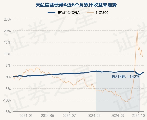 证券之星消息,10月15日,天弘信益债券A最新单位净值为1.0624元,累计净值为1.1572元,较前一交易日上涨0.12%。历史数据显示该基金近1个月下跌0.52%,近3个月上涨0.24%,近6个月上涨1.8%,近1年上涨4.27%。该基金近6个月的累计收益率走势如下图: