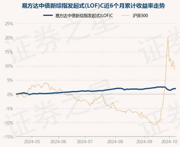 证券之星消息,10月15日,易方达中债新综指发起式(LOF)C最新单位净值为1.6494元,累计净值为1.6494元,较前一交易日上涨0.05%。历史数据显示该基金近1个月下跌0.35%,近3个月上涨0.79%,近6个月上涨1.97%,近1年上涨5.68%。该基金近6个月的累计收益率走势如下图: