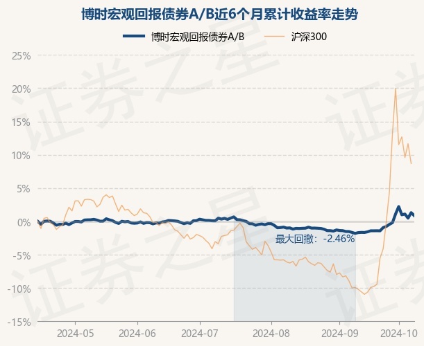 证券之星消息,10月15日,博时宏观回报债券A/B最新单位净值为1.4283元,累计净值为1.5963元,较前一交易日下跌0.45%。历史数据显示该基金近1个月上涨2.47%,近3个月上涨0.37%,近6个月上涨0.86%,近1年上涨1.99%。该基金近6个月的累计收益率走势如下图: