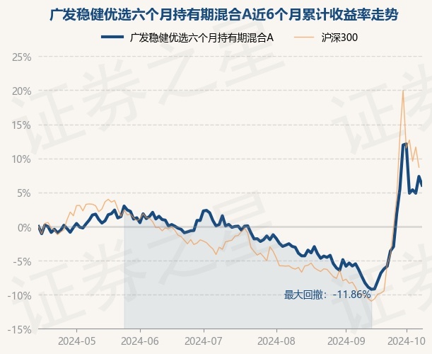 证券之星消息,10月15日,广发稳健优选六个月持有期混合A最新单位净值为1.1163元,累计净值为1.1163元,较前一交易日下跌1.21%。历史数据显示该基金近1个月上涨16.76%,近3个月上涨6.04%,近6个月上涨6.05%,近1年上涨12.34%。该基金近6个月的累计收益率走势如下图: