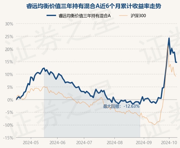 证券之星消息,10月16日,睿远均衡价值三年持有混合A最新单位净值为1.3271元,累计净值为1.3271元,较前一交易日上涨0.0%。历史数据显示该基金近1个月上涨16.32%,近3个月上涨11.76%,近6个月上涨14.53%,近1年上涨11.67%。该基金近6个月的累计收益率走势如下图: