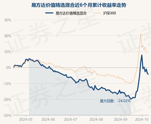 证券之星消息,10月16日,易方达价值精选混合最新单位净值为1.1052元,累计净值为3.8142元,较前一交易日下跌0.58%。历史数据显示该基金近1个月上涨19.31%,近3个月上涨4.57%,近6个月下跌4.39%,近1年下跌2.04%。该基金近6个月的累计收益率走势如下图: