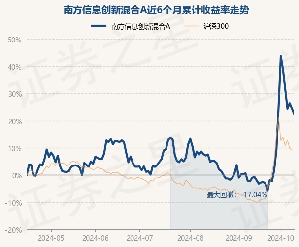 证券之星消息,10月16日,南方信息创新混合A最新单位净值为1.5064元,累计净值为1.5064元,较前一交易日下跌1.57%。历史数据显示该基金近1个月上涨26.63%,近3个月上涨12.33%,近6个月上涨22.55%,近1年下跌4.24%。该基金近6个月的累计收益率走势如下图: