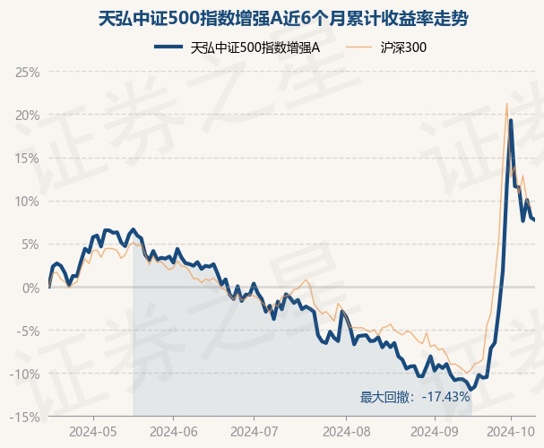 证券之星消息,10月16日,天弘中证500指数增强A最新单位净值为1.1214元,累计净值为1.1214元,较前一交易日下跌0.27%。历史数据显示该基金近1个月上涨22.34%,近3个月上涨9.4%,近6个月上涨7.72%,近1年上涨1.94%。该基金近6个月的累计收益率走势如下图: