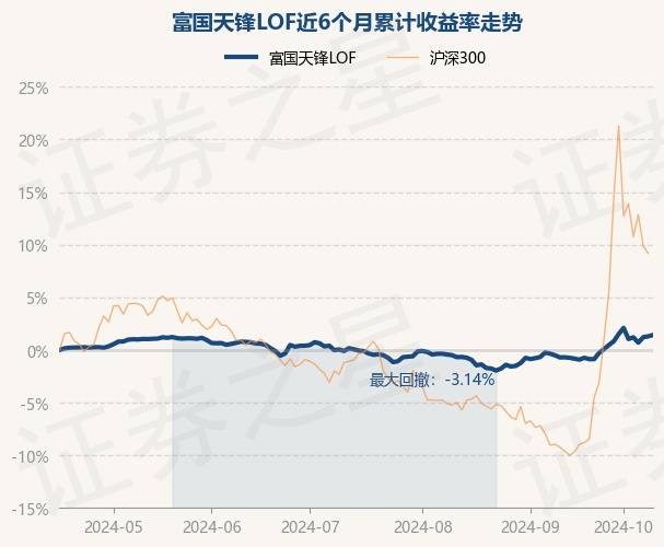 证券之星消息,10月16日,富国天锋LOF最新单位净值为1.1067元,累计净值为1.6862元,较前一交易日上涨0.13%。历史数据显示该基金近1个月上涨2.26%,近3个月上涨1.52%,近6个月上涨1.42%,近1年上涨2.86%。该基金近6个月的累计收益率走势如下图: