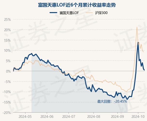 证券之星消息,10月16日,富国天惠LOF最新单位净值为2.4102元,累计净值为5.4582元,较前一交易日下跌0.54%。历史数据显示该基金近1个月上涨16.38%,近3个月上涨3.73%,近6个月上涨0.39%,近1年下跌3.74%。该基金近6个月的累计收益率走势如下图: