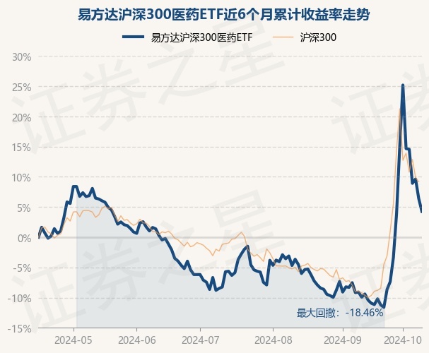 证券之星消息,10月16日,易方达沪深300医药ETF最新单位净值为0.3626元,累计净值为1.4504元,较前一交易日下跌2.0%。历史数据显示该基金近1个月上涨17.04%,近3个月上涨10.75%,近6个月上涨4.26%,近1年下跌15.44%。该基金近6个月的累计收益率走势如下图: