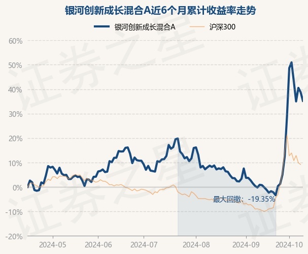 证券之星消息,10月16日,银河创新成长混合A最新单位净值为5.0656元,累计净值为5.0656元,较前一交易日下跌2.55%。历史数据显示该基金近1个月上涨36.77%,近3个月上涨15.37%,近6个月上涨35.21%,近1年上涨13.5%。该基金近6个月的累计收益率走势如下图: