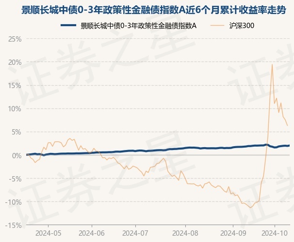 证券之星消息,10月17日,景顺长城中债0-3年政策性金融债指数A最新单位净值为1.0338元,累计净值为1.0532元,较前一交易日上涨0.09%。历史数据显示该基金近1个月上涨0.06%,近3个月上涨0.98%,近6个月上涨2.0%,近1年上涨4.74%。该基金近6个月的累计收益率走势如下图: