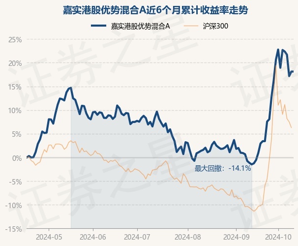 证券之星消息,10月17日,嘉实港股优势混合A最新单位净值为0.8796元,累计净值为0.8796元,较前一交易日上涨0.0%。历史数据显示该基金近1个月上涨16.77%,近3个月上涨9.04%,近6个月上涨16.13%,近1年上涨16.4%。该基金近6个月的累计收益率走势如下图:
