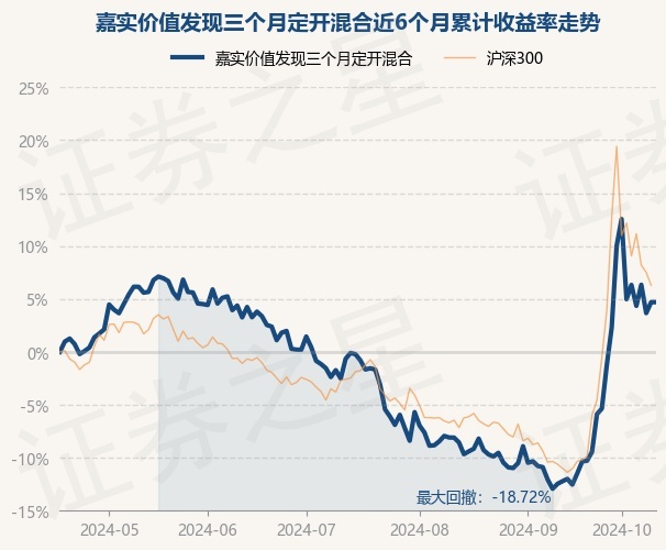 证券之星消息,10月17日,嘉实价值发现三个月定开混合最新单位净值为0.9653元,累计净值为1.0632元,较前一交易日上涨0.0%。历史数据显示该基金近1个月上涨17.56%,近3个月上涨4.56%,近6个月上涨2.82%,近1年上涨5.58%。该基金近6个月的累计收益率走势如下图: