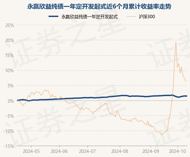 证券之星消息,10月17日,永赢欣益纯债一年定开发起式最新单位净值为1.0167元,累计净值为1.1557元,较前一交易日上涨0.0%。历史数据显示该基金近1个月下跌0.09%,近3个月上涨0.45%,近6个月上涨1.52%,近1年上涨4.38%。该基金近6个月的累计收益率走势如下图: