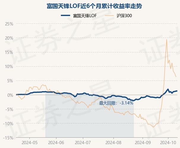 证券之星消息,10月17日,富国天锋LOF最新单位净值为1.1074元,累计净值为1.6869元,较前一交易日上涨0.06%。历史数据显示该基金近1个月上涨2.33%,近3个月上涨1.82%,近6个月上涨1.33%,近1年上涨2.97%。该基金近6个月的累计收益率走势如下图: