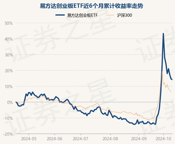 证券之星消息,10月17日,易方达创业板ETF最新单位净值为1.9957元,累计净值为2.2862元,较前一交易日下跌0.31%。历史数据显示该基金近1个月上涨32.42%,近3个月上涨19.88%,近6个月上涨14.2%,近1年上涨4.38%。该基金近6个月的累计收益率走势如下图:
