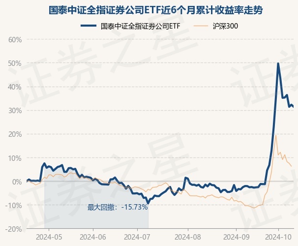 证券之星消息,10月17日,国泰中证全指证券公司ETF最新单位净值为1.086元,累计净值为1.086元,较前一交易日下跌0.62%。历史数据显示该基金近1个月上涨35.01%,近3个月上涨38.17%,近6个月上涨31.43%,近1年上涨15.31%。该基金近6个月的累计收益率走势如下图: