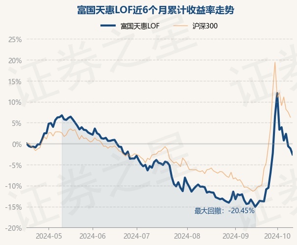 证券之星消息,10月17日,富国天惠LOF最新单位净值为2.3757元,累计净值为5.4237元,较前一交易日下跌1.43%。历史数据显示该基金近1个月上涨14.72%,近3个月上涨2.63%,近6个月下跌2.58%,近1年下跌5.16%。该基金近6个月的累计收益率走势如下图: