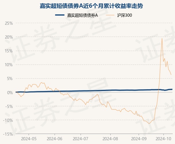 证券之星消息,10月17日,嘉实超短债债券A最新单位净值为1.0534元,累计净值为1.1428元,较前一交易日上涨0.02%。历史数据显示该基金近1个月上涨0.65%,近3个月上涨0.68%,近6个月上涨1.22%,近1年上涨2.95%。该基金近6个月的累计收益率走势如下图: