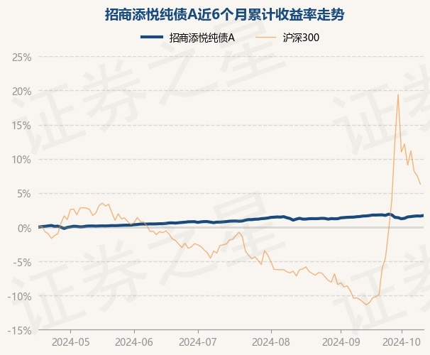 证券之星消息,10月17日,招商添悦纯债A最新单位净值为1.0339元,累计净值为1.2357元,较前一交易日上涨0.09%。历史数据显示该基金近1个月上涨0.01%,近3个月上涨0.8%,近6个月上涨1.71%,近1年上涨4.36%。该基金近6个月的累计收益率走势如下图: