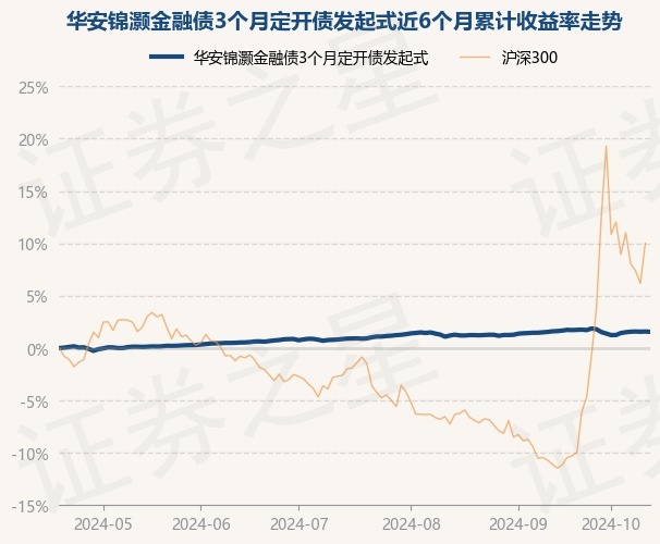 证券之星消息,10月18日,华安锦灏金融债3个月定开债发起式最新单位净值为1.0345元,累计净值为1.1085元,较前一交易日下跌0.03%。历史数据显示该基金近1个月下跌0.18%,近3个月上涨0.65%,近6个月上涨1.55%,近1年上涨4.17%。该基金近6个月的累计收益率走势如下图: