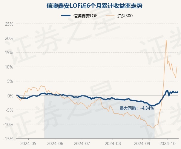 证券之星消息,10月18日,信澳鑫安LOF最新单位净值为1.066元,累计净值为1.393元,较前一交易日上涨0.38%。历史数据显示该基金近1个月上涨4.82%,近3个月上涨2.11%,近6个月上涨1.33%,近1年上涨5.54%。该基金近6个月的累计收益率走势如下图: