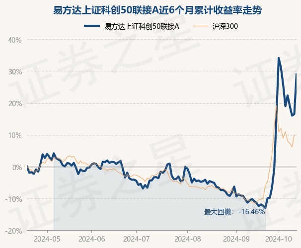 证券之星消息,10月18日,易方达上证科创50联接A最新单位净值为0.7651元,累计净值为0.7651元,较前一交易日上涨10.74%。历史数据显示该基金近1个月上涨47.25%,近3个月上涨30.47%,近6个月上涨29.0%,近1年上涨11.53%。该基金近6个月的累计收益率走势如下图: