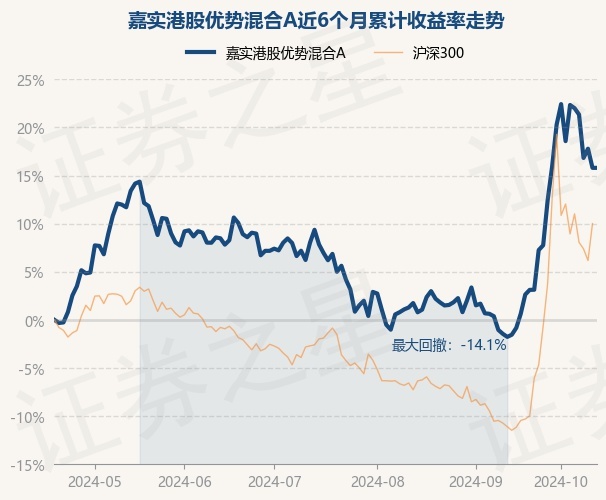 证券之星消息,10月18日,嘉实港股优势混合A最新单位净值为0.9128元,累计净值为0.9128元,较前一交易日上涨0.0%。历史数据显示该基金近1个月上涨19.4%,近3个月上涨12.46%,近6个月上涨20.17%,近1年上涨21.37%。该基金近6个月的累计收益率走势如下图:
