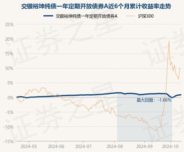 证券之星消息,10月18日,交银裕坤纯债一年定期开放债券A最新单位净值为1.0807元,累计净值为1.1557元,较前一交易日上涨0.02%。历史数据显示该基金近1个月下跌0.45%,近3个月下跌0.15%,近6个月上涨0.83%,近1年上涨3.43%。该基金近6个月的累计收益率走势如下图: