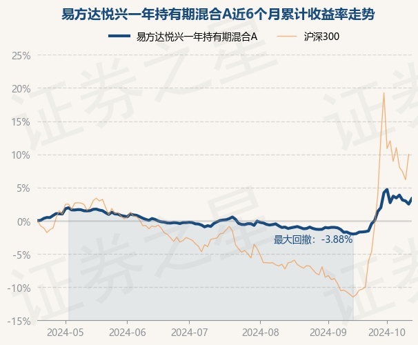 证券之星消息,10月18日,易方达悦兴一年持有期混合A最新单位净值为1.0269元,累计净值为1.0269元,较前一交易日上涨0.8%。历史数据显示该基金近1个月上涨5.12%,近3个月上涨2.99%,近6个月上涨3.32%,近1年上涨2.85%。该基金近6个月的累计收益率走势如下图: