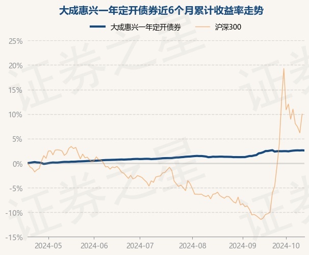 证券之星消息,10月18日,大成惠兴一年定开债券最新单位净值为1.0417元,累计净值为1.1632元,较前一交易日下跌0.03%。历史数据显示该基金近1个月上涨0.12%,近3个月上涨1.54%,近6个月上涨2.58%,近1年上涨5.83%。该基金近6个月的累计收益率走势如下图:
