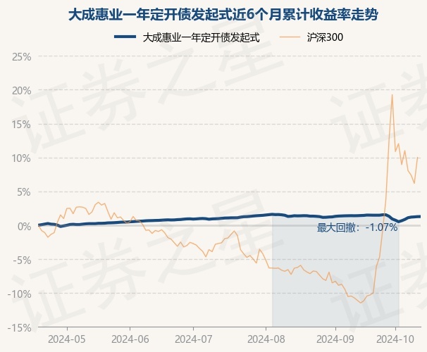 证券之星消息,10月18日,大成惠业一年定开债发起式最新单位净值为1.0052元,累计净值为1.1202元,较前一交易日上涨0.01%。历史数据显示该基金近1个月下跌0.22%,近3个月上涨0.18%,近6个月上涨1.28%,近1年上涨5.46%。该基金近6个月的累计收益率走势如下图: