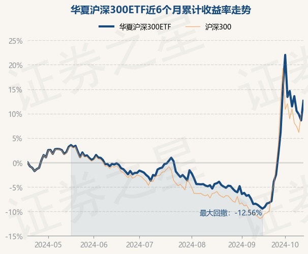 证券之星消息,10月18日,华夏沪深300ETF最新单位净值为4.1024元,累计净值为1.9716元,较前一交易日上涨3.69%。历史数据显示该基金近1个月上涨23.91%,近3个月上涨12.18%,近6个月上涨12.62%,近1年上涨11.36%。该基金近6个月的累计收益率走势如下图: