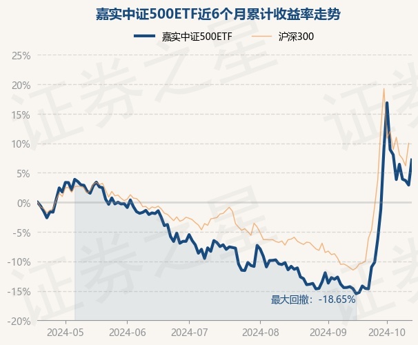 证券之星消息,10月18日,嘉实中证500ETF最新单位净值为5.9511元,累计净值为1.8645元,较前一交易日上涨4.14%。历史数据显示该基金近1个月上涨26.49%,近3个月上涨15.93%,近6个月上涨7.18%,近1年上涨3.62%。该基金近6个月的累计收益率走势如下图: