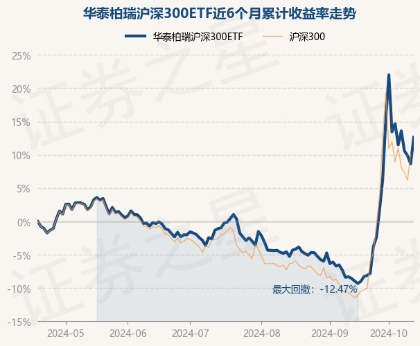 证券之星消息,10月18日,华泰柏瑞沪深300ETF最新单位净值为4.0086元,累计净值为1.7352元,较前一交易日上涨3.68%。历史数据显示该基金近1个月上涨23.76%,近3个月上涨12.11%,近6个月上涨12.62%,近1年上涨11.23%。该基金近6个月的累计收益率走势如下图: