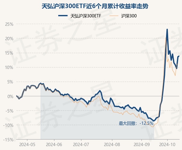 证券之星消息,10月21日,天弘沪深300ETF最新单位净值为1.1011元,累计净值为1.1011元,较前一交易日上涨0.22%。历史数据显示该基金近1个月上涨22.99%,近3个月上涨11.78%,近6个月上涨13.83%,近1年上涨14.85%。该基金近6个月的累计收益率走势如下图: