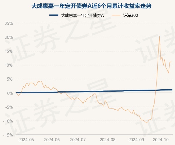 证券之星消息,10月21日,大成惠嘉一年定开债券A最新单位净值为1.0085元,累计净值为1.1213元,较前一交易日上涨0.01%。历史数据显示该基金近1个月上涨0.17%,近3个月上涨0.6%,近6个月上涨1.07%,近1年上涨2.2%。该基金近6个月的累计收益率走势如下图: