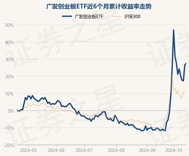 证券之星消息,10月21日,广发创业板ETF最新单位净值为1.3244元,累计净值为1.3244元,较前一交易日上涨0.69%。历史数据显示该基金近1个月上涨43.82%,近3个月上涨28.31%,近6个月上涨27.46%,近1年上涨17.8%。该基金近6个月的累计收益率走势如下图: