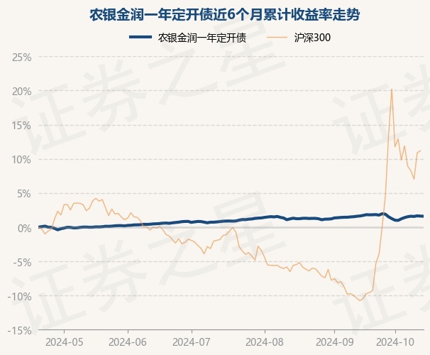 证券之星消息,10月21日,农银金润一年定开债最新单位净值为1.0236元,累计净值为1.1476元,较前一交易日下跌0.02%。历史数据显示该基金近1个月下跌0.21%,近3个月上涨0.68%,近6个月上涨1.59%,近1年上涨5.15%。该基金近6个月的累计收益率走势如下图: